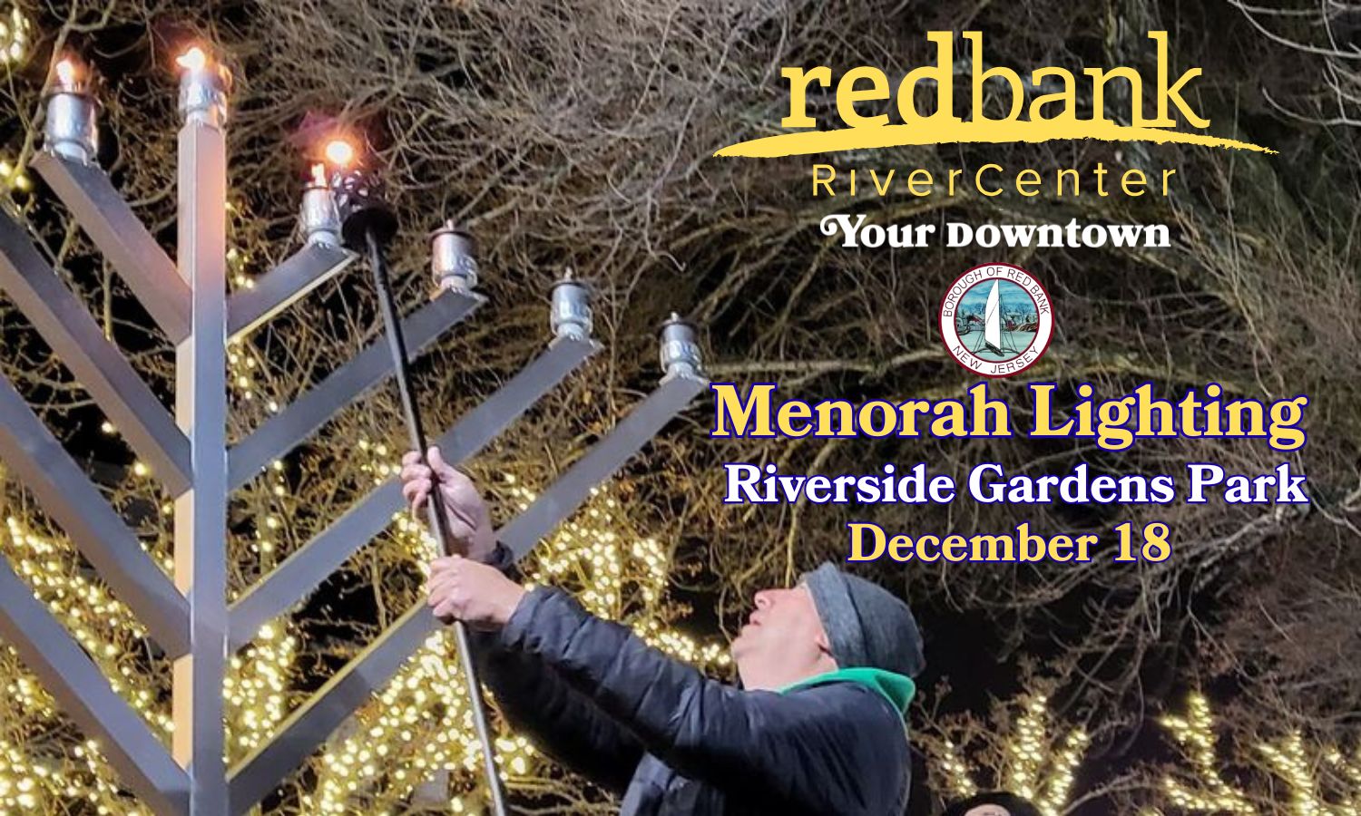 The Festival of Lights is fast approaching!  Don’t miss the downtown Red Bank Menorah Lighting on Thursday December 18 at 6:30 pm in Riverside Gardens Park!  Rabbi Dovid Harrison will lead the event.  Enjoy live music, latkes, donuts, hot chocolate and plenty of Hannukah fun!